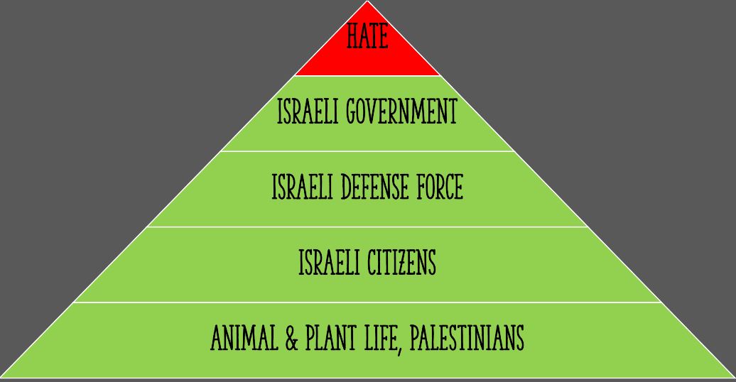 What if I told you it has already happened? Right now, a massacre of a scale unseen in recent times is unfolding in Gaza. It’s truthfully a genocide (let’s stop pretending that the jury is still out on that) being directed by hate. This is how I envision the food chain to look like in Israel: