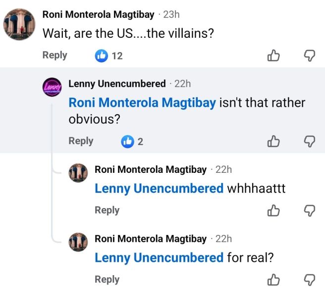 The Filipino in question, responding on social media to initial reports of the bombing, seemed incredulous that America could actually be a villain. He seemed perplexed by the (justified, I might add) hatred being directed at the country.